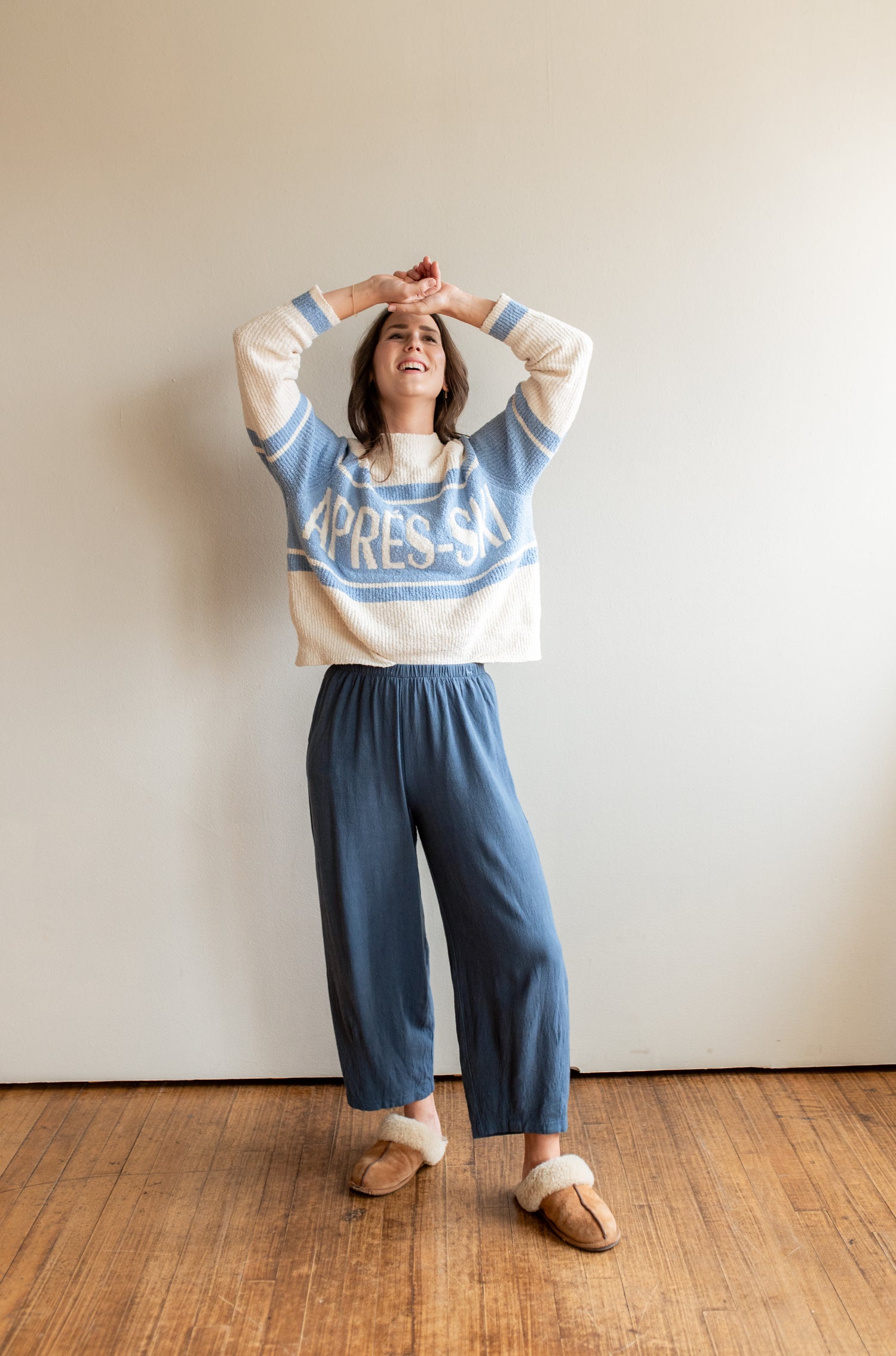 Celebrate the winter season & aprés lifestyle with this fun ski sweater. Perfectly paired with your cozy bottoms - worn here with our Drom Pant - or denim. Throw on under a winter coat & snow pants for an added snow day layer.