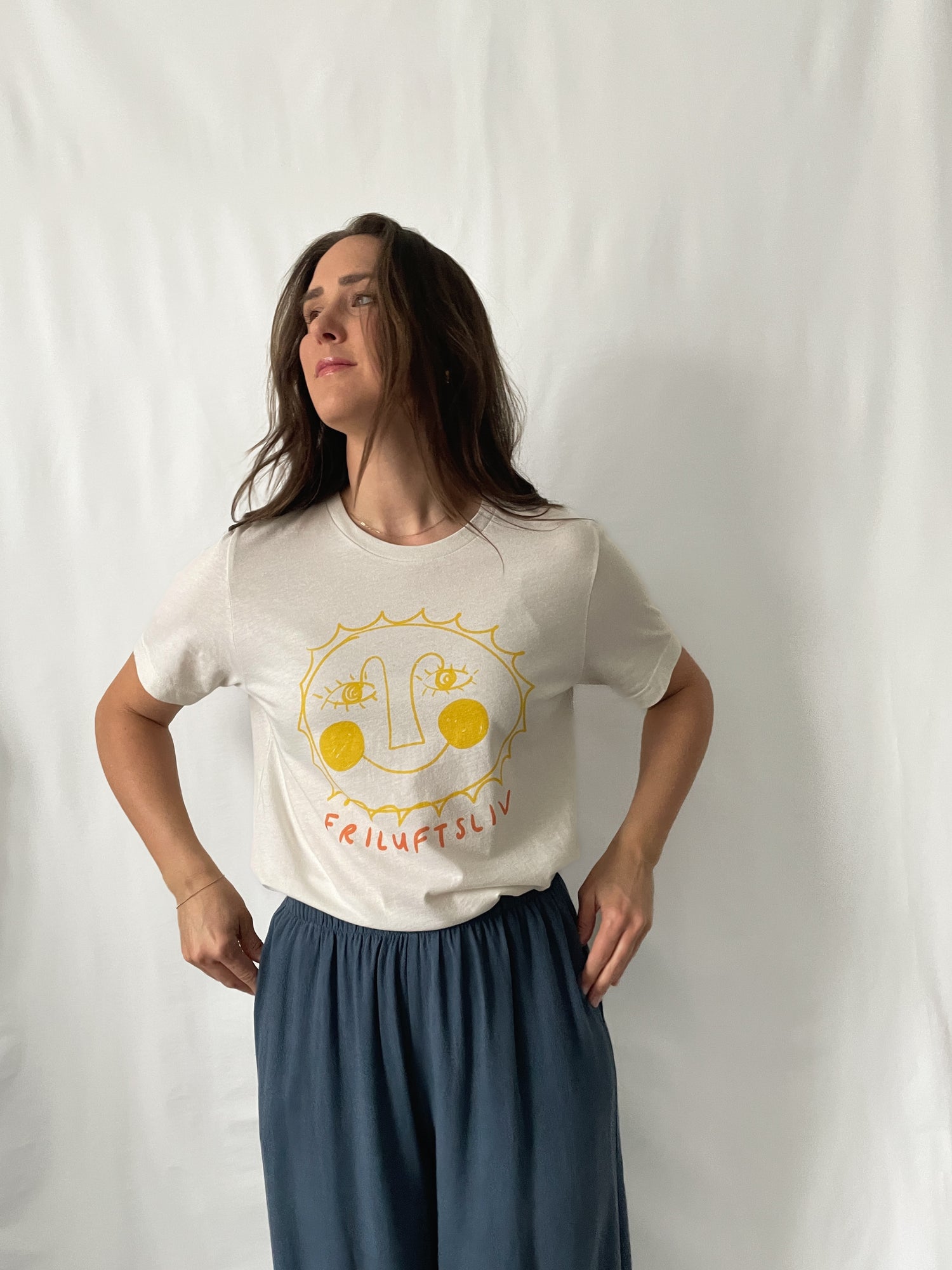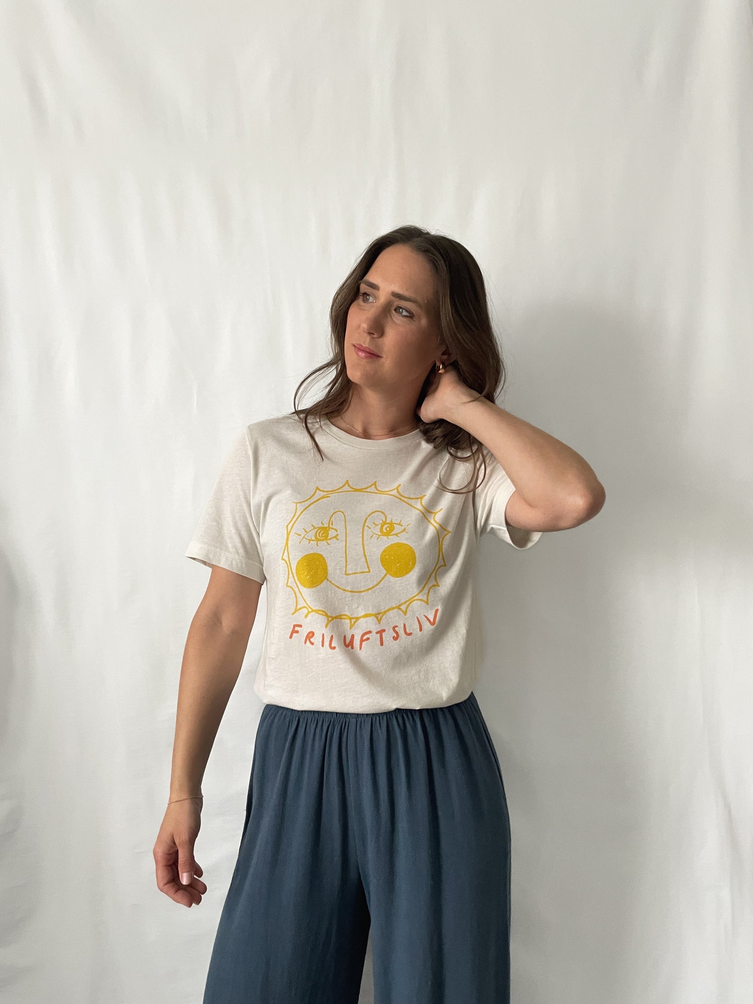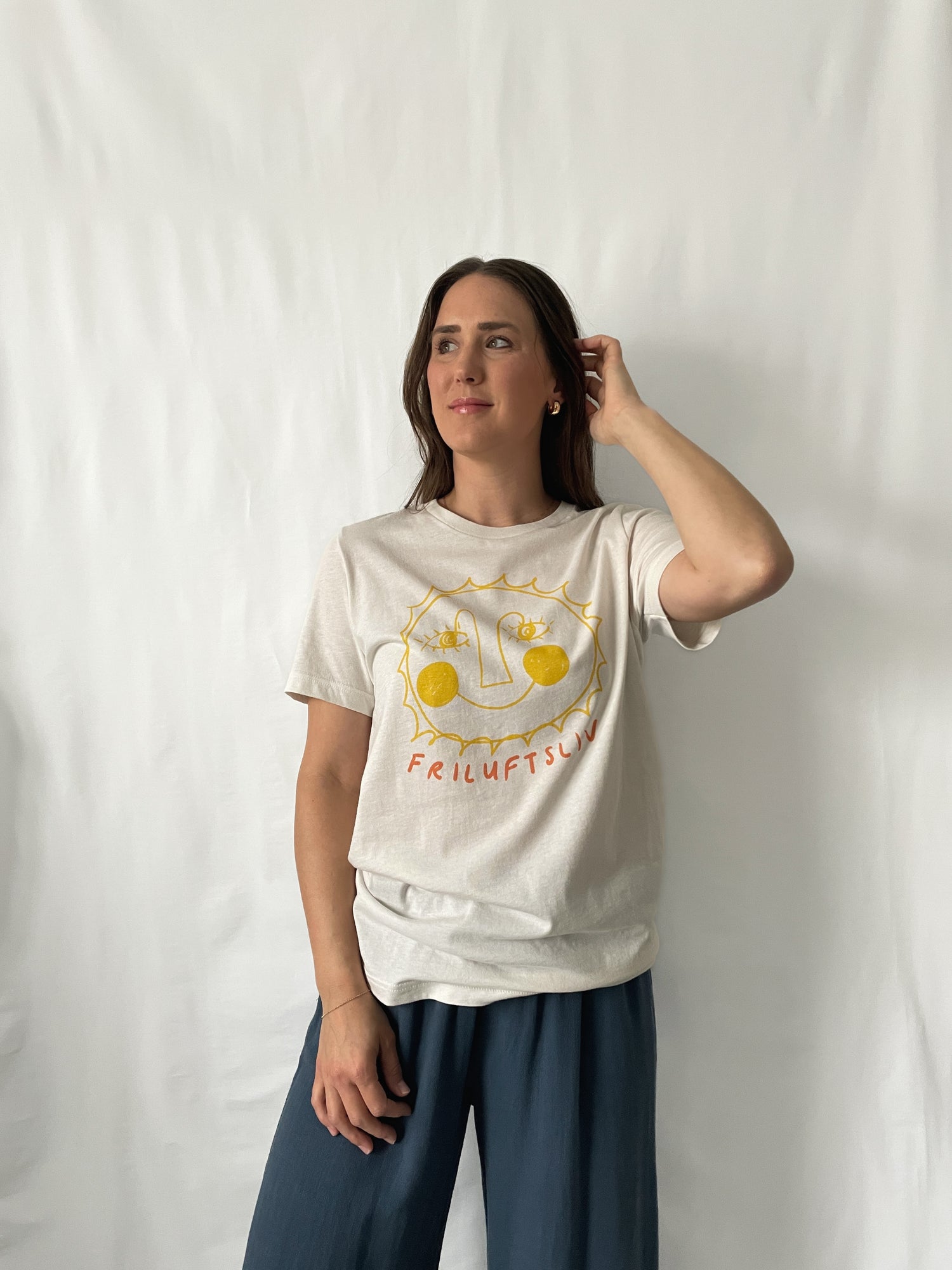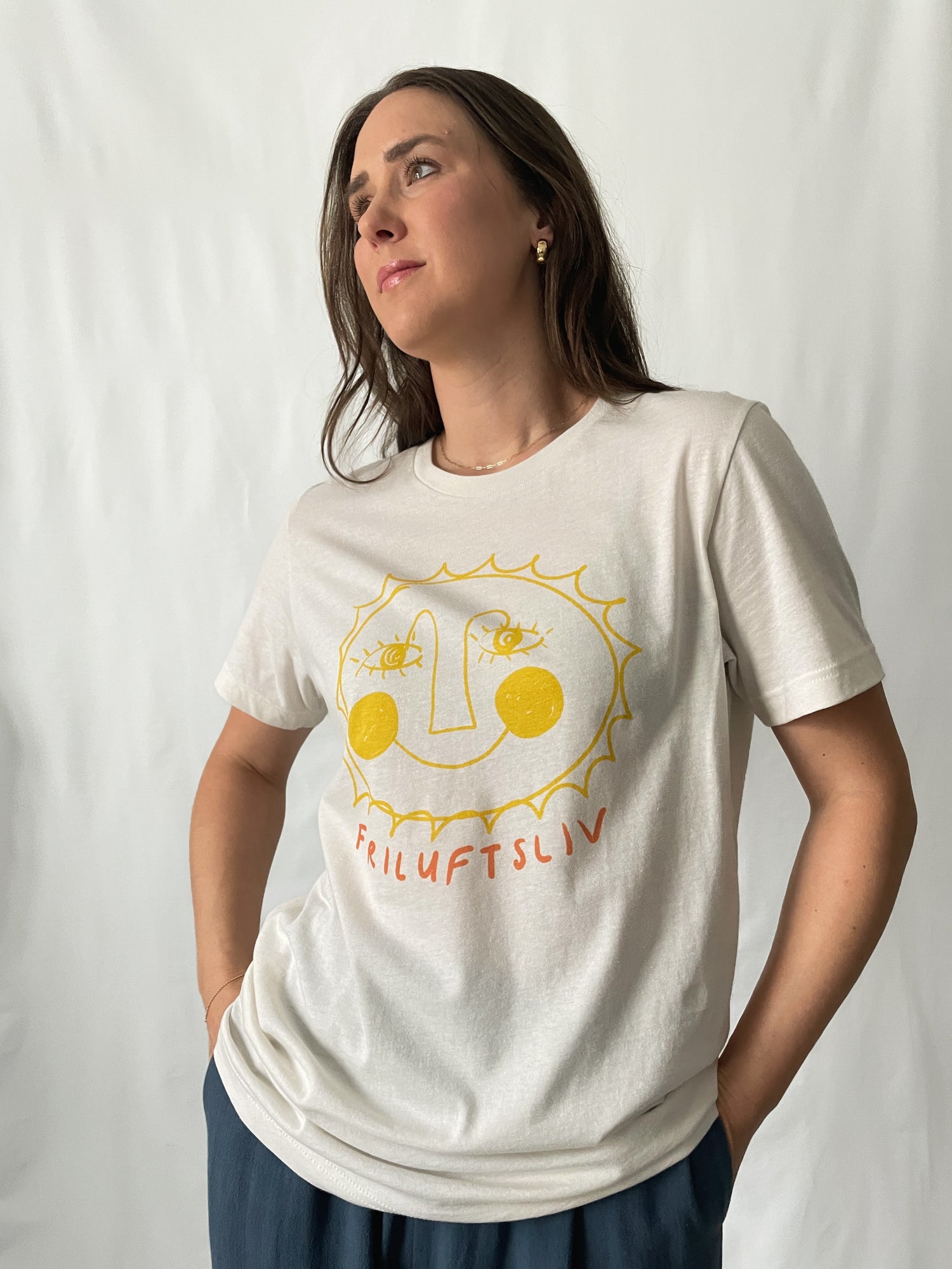 Crew neck t-shirt with original sun & 'friluftsliv' graphic.
