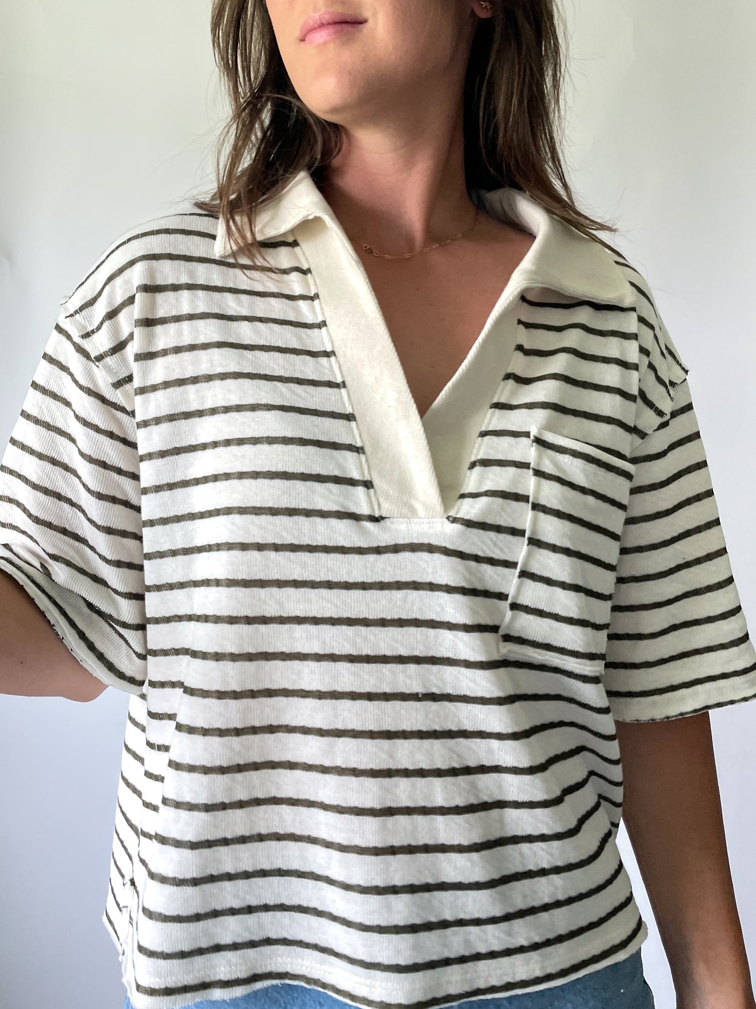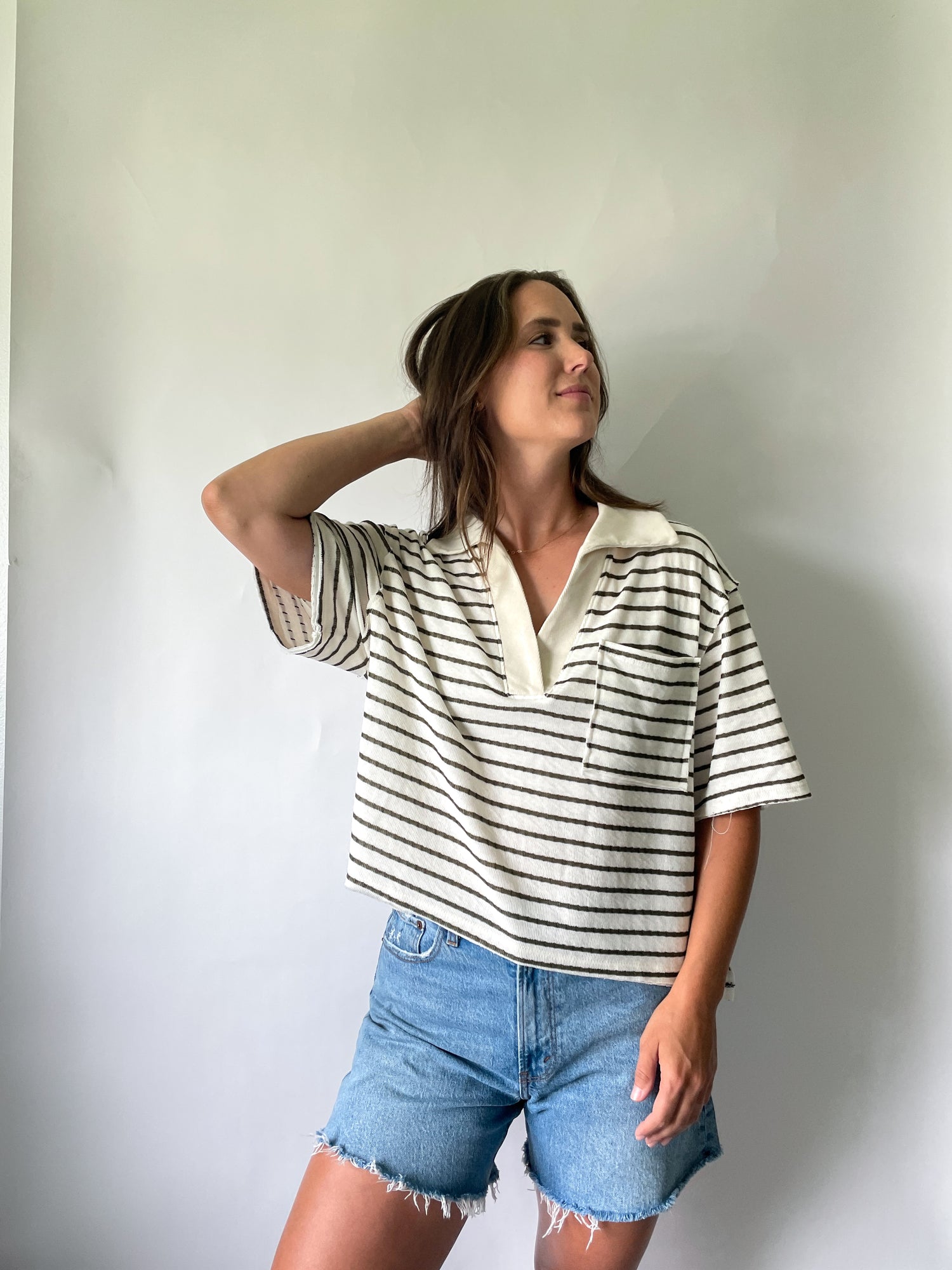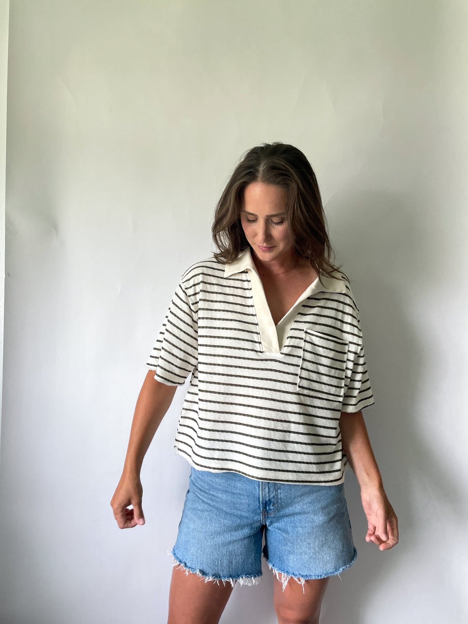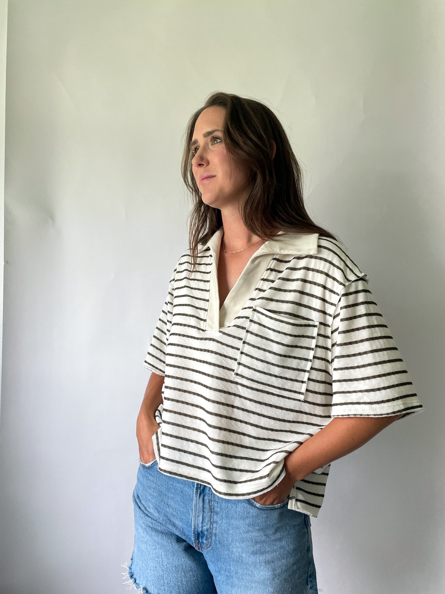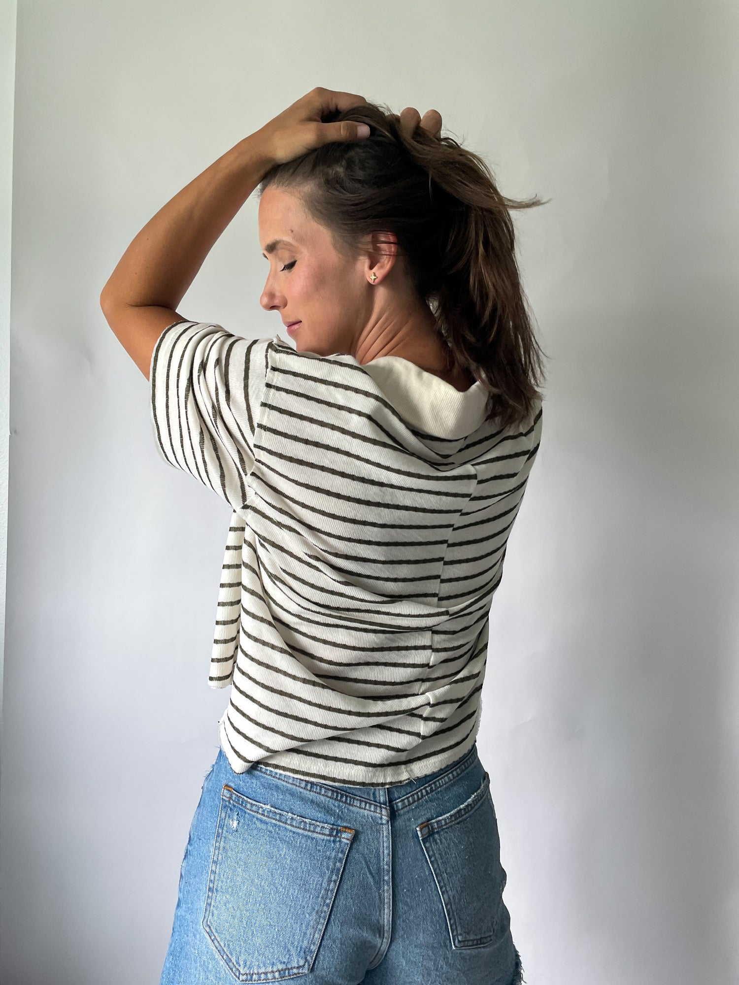 This one says "from summer to fall" as it's a perfect transition piece. Think over swim for boat days and paired with denim for evening s'mores. Then wear it to the first game day of the season. Would look great with faux leather bottoms, trousers and denim skirts too.