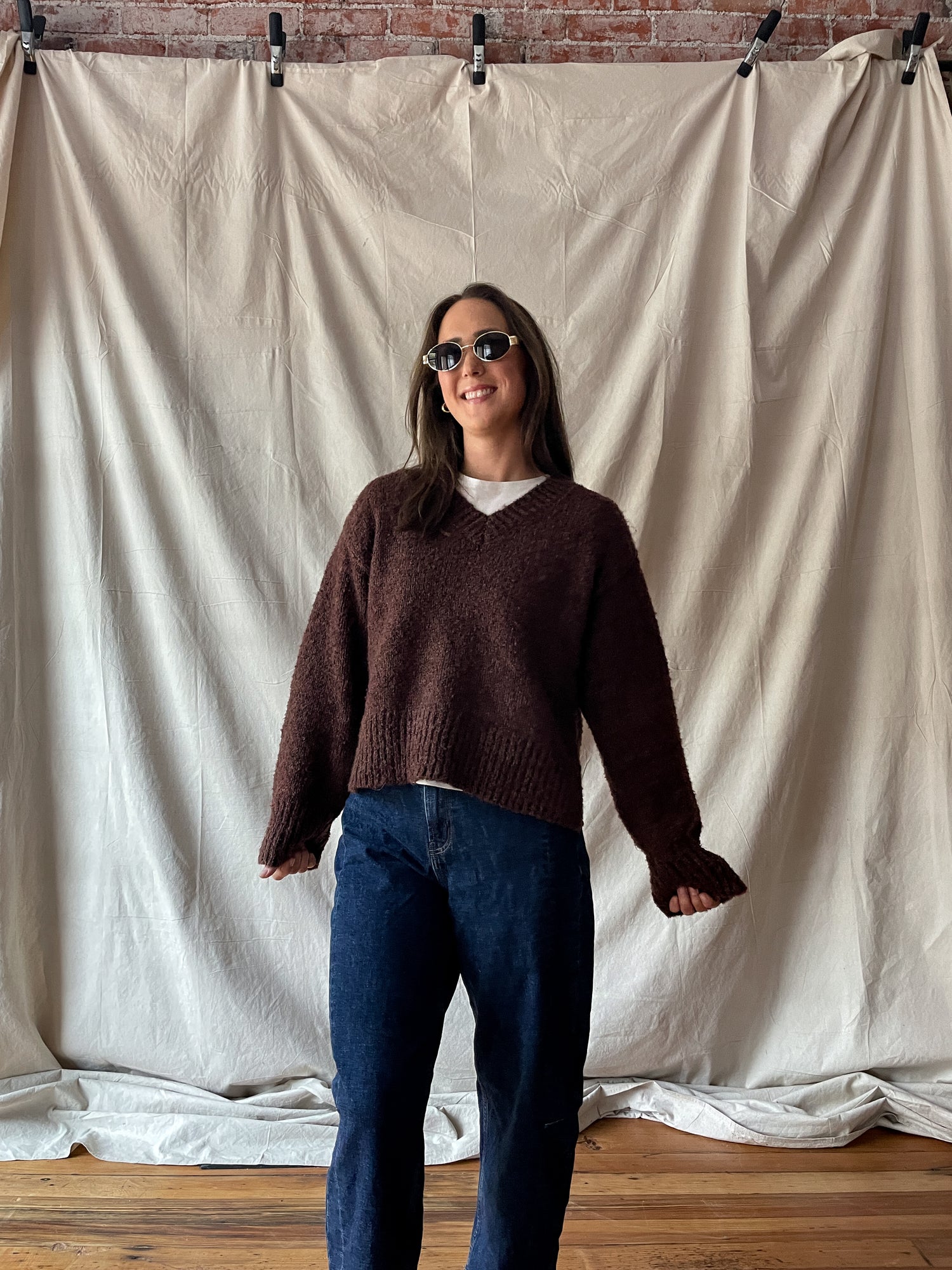 V-neck boucle sweater.