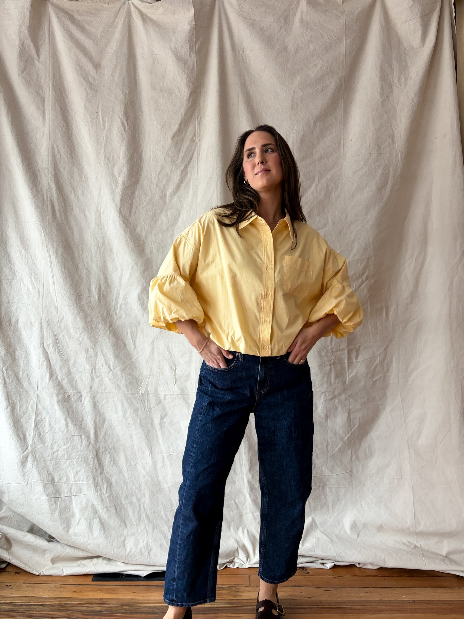 A unique top to add to your wardrobe and to pair with almost any bottom for added appeal. Looks great with denim, would pair nicely with printed bottoms and skirts as well. Dress it up even more with a tie or scarf. Truly an all-seasons option! Styled here with our Iris Scarf.